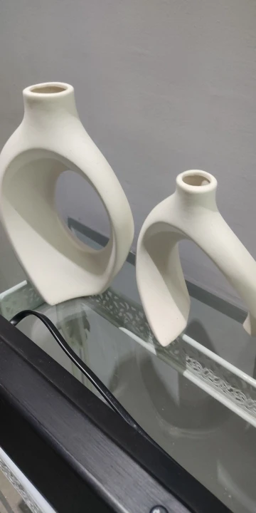 Introducing Elysian Vases, the perfect fusion of contemporary style and timeless elegance. This set of two hollow ceramic vases is designed to enhance your living space, whether on a bookshelf, coffee table, or as a centerpiece.